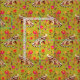 dragones con barba en naranja rosa brillante y flores amarillas, el fondo es verde vibrante