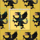 Este diseño desenfrenado de dragón en negro se inspiró en varios dragones negros heráldicos.