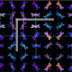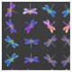 Dragonetas multicolores en el campo negro. Tejido de Bonito para artesanía, máscaras, ropa, cortinas, por así decirlo.
