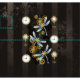 Marcos antiguos y llaves con engranajes de oro y de latón, decorados con libélulas mecánicas de vapor punk sobre fondo marrón, rayado.