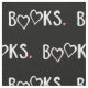 Una tela modelada para el lector ávido, con los LIBROS escritos en blanco en negro, con los corazones para los o y los corazones rosados lindos como períodos.