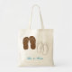 Bolso nupcial moderno y de la diversión de la ducha. Ofrece la y sus pares de flips-flopes en blanco y marrón. Ideal para la ducha de un par. Playa o tema del verano con un tacto de la clase. Diseño veraniego y fresco. Añada su propia fraseología. Gran regalo de encargo para la novia y el novio o para las damas de honor. También puede ser utilizado para acoger con satisfacción a huéspedes de fuera de la ciudad. Utilícelo para las toallas de playa o apenas pescar con cebo de cuchara alrededor.