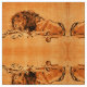 Un león bereber extinguido que se agarra, descansa, escribe y tira del pintor holandés Rembant Van Rijn a fines de los años 1640. Diseño clásico en colores vivos naranja amarillo marrón negro.