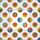 Minimalista tejido retro de mediados de siglo con patrones abstractos del núcleo del planeta Tierra.
