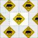 El oso de SlipperyJoe cruzando la silueta del oso caminar fondo amarillo simbolizando fuerza naturaleza advertencia advertencia blanda paleta de colores amarillo negro oro mareo aventura artística orgullo gay regalos LGBTQIA