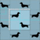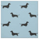 Tela modelada original para los amantes del Dachshund. Disponible en muchos estilos de la tela, este modelo lindo ofrece siluetas negras de pelo corto del perro de la salchicha de Frankfurt en azules cielos. El fondo coloreado se puede cambiar usando las herramientas fáciles del arreglo para requisitos particulares de Zazzle. Un modelo de la diversión para su proyecto de costura siguiente, grande para crear los regalos hechos a mano originales para los amantes del dachsie. Mundo del Doodle de Jenn de la visita para aún más regalos del amante de la tela y del animal de la raza del perro incluyendo siluetas de pelo largo y wirehaired del Dachshund.