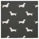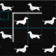 Tela modelada original para los amantes del Dachshund. Disponible en muchos estilos de la tela, este modelo lindo ofrece siluetas blancas de pelo corto del perro de la salchicha de Frankfurt en negro. El fondo negro se puede cambiar usando las herramientas fáciles del arreglo para requisitos particulares de Zazzle. Un modelo de la diversión para su proyecto de costura siguiente, grande para crear los regalos hechos a mano originales para los amantes del dachsie. Mundo del Doodle de Jenn de la visita para aún más regalos del amante de la tela y del animal de la raza del perro incluyendo siluetas de pelo largo y wirehaired del Dachshund.
