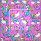 purpurinoso de color rosa Kitschy, unicornio y personalizado de gatitos ilustracion sobre un fondo rosa brillante con arcos de lluvia, helados y donuts