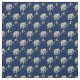 Esta tela hermosa ofrece un modelo lindo de pequeños elefantes grises con un tronco y un pie juguetónamente levantados en azul de medianoche, alternando con las estrellas y las lunas amarillas de oro.
