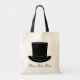 Elegante bolso de tocador de boda con sombrero negro de tophat | Personalizar. Diseño de sombreros en la parte superior negra con texto de guión elegante. Idea de regalo personalizada para damas de honor, padrinos y familia.