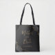 Esta elegante y moderna bolsa de mano Mother of the Bride presenta un diseño de ágata de acuarela negra recortada con purpurina dorada falsa en dos esquinas. Las palabras "Madre de la Novia" aparecen en escritura dorada a mano sobre un fondo oscuro casi negro. Agregue su nombre en fuente de cobre de color dorado.