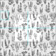 Tela Elegante patrón de jardín de hierbas blancas negra