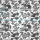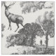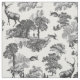 Patrón clásico de tela de tela de tela de jouy francesa, con animales del bosque, ciervos, zorros, arenas, árboles en el campo