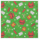 Tela verde esmeralda festiva con un patrón de botas elf de Navidades rojos lindos, gorras y túnez con latas de caramelo y copos de nieve