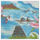 Escenas tropicales del océano con las canoas de soporte en colores en colores pastel