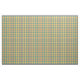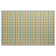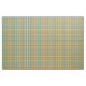 Tela con un amarillo brillante, un naranja, y una tela escocesa verde del seafoam, con acentos azules y blancos. Un modelo original de Plaidwerx en la industria de moda que tiende colores.