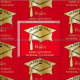 Este diseño de tapón de graduación con gradiente de tono dorado está listo para que usted lo personalize con su año de clase en negrita negro y el nombre de grado favorito y escuela en tono dorado y todo en un fondo rojo (o usted puede cambiar de color). Ilustracion original y diseño de Holiday Hearts Designs (todos los derechos reservados).