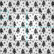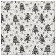 Esta divertida tela de Navidades negros y blancos presenta un peculiar árbol de Navidad y un patrón de copos de nieve.