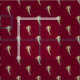 Esquiador dorado con diseño de fondo rojo.