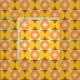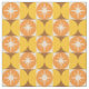 Este es un elegante patrón de estrenos atómicos de mediados de siglo en círculos naranjas y círculos medios amarillos en cuadrados