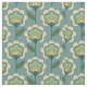 Este modelo moderno de los mediados de siglo ofrece diseño floral verde azulado y amarillo.