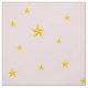Estrellas amarillas doradas dispersas sobre tela rosa claro. Elija entre muchos tamaños y tipos de tela diferentes.