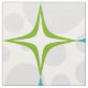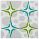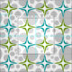 Patrón retro de mediados de siglo en agua y verde con puntos grises aleatorios.