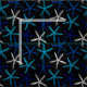 Ilustracion de las estrellas de mar. Tema vivo costero. Azul profundo en fondo negro.
