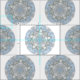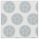 Esta tela tiene un círculo abstracto azul de encaje del diseño en una impresión de repetición que sea no directiva. El extracto se asemeja a una escama de la nieve. Azul claro con acentos grises azulados.