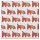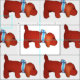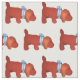 El cachorro rojo lindo con cuello blanco y azul está enlosado a través de la tela. Foto de un perro juguete cocido en hilados.
