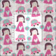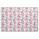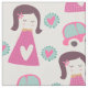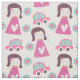Una tela divertida, colorida y caprichosa, ideal para los chicas, muestra a las niñas con vestidos rosas con el corazón blanco, muchos autos rosados y corazones rosados en círculos azules, todo con un fondo blanco.