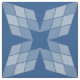 Las formas de diamante crean un patrón caleidoscopio de cuatro puntos, como el que se crea en el tejido por partes. Los diamantes consisten en tres valores de filtrado, para crear un patrón en cuatro tonos del color de fondo elegido (el valor predeterminado es un azul medio). Los cuatro "pétalos" se cruzan para crear dos tamaños de cuatro estrellas puntiagudas en el espacio negativo.