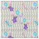 Los osos de peluche vuelan por el aire sobre las cuerdas de 5 globos coloridos con letras sobre ellos que deletrean la palabra FELIZ. Estos osos son más inusuales porque su piel es de color morado y son osos de princesa que llevan joyas de flores y elegantes coronas. Flotan sobre un mar de flores rosas y amarillas creciendo sobre elegantes tallos verdes plegables. Un fantástico diseño de tela divertida que se puede usar para muchos proyectos de costura y artesanía para chicas. Personaliza con un nombre especial. Si desea que la tela no tenga nombre ni texto, simplemente elimine el texto de las plantillas. ©AnuraDesignStudio Todos los derechos reservados