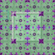 Formas intrincadas muy espaciadas sobre fondo azul. El Fleur-de-lis es la forma de ancla para este diseño. La figura clásica de tres puntos se balancea con un arreglo de cuatro estrellas y floridos. Las formas son principalmente moradas. El fondo es de color verde.