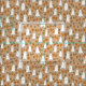 Diseñe sus propios proyectos de Halloween bonitos con esta tela estampada. Cuenta con bonitos ilustraciones personalizados de fantasmas blancos de estilo doodle en un jardín lleno de flores naranjas y amarillas. Los gráficos están colocados sobre un fondo burlap color marrón claro para un aspecto hogareño.