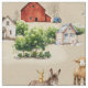 Sewing or craft fabric with farm scene. Red barns, farm animals, chicken coops and trees are the design on fabric of your choice.