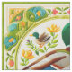 Faux Embroidered and Quilted Look Mallard Duck con un borde circular de flores azules y rosadas.