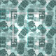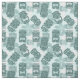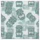 La diversión Tiki dirige contra un fondo de flores tropicales y de símbolos polinesios. ¡Una gran tela para su proyecto de costura retro!
