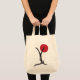 La bolsa de asas con la mano puso letras a yoga para diseñar con un sol rojo y las letras que formaban la forma de una figura humana.