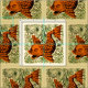 Gráfico de mosaico de peces - Este naranja antiguo es un diseño de arte gráfico, basado en una baldosa victoriana del siglo XIX del famoso diseñador de artesanías William De Morgan. La pintura artística se basa en el movimiento de artes y artesanía, y se remonta a las antiguas baldosas de peces de Grecia y Roma.