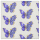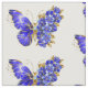 Joyería, azul, zafiro, mariposa floral brillante con ala decorada con flores azules y preciosas con hojas de oro sobre fondo blanco.