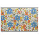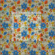 Tela Floral azul retro, amarillo y Naranja