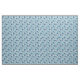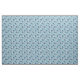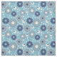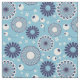 Este tejido presenta una impresión de flores de estilo geométrico, limpio y moderno con un toque retro. Las flores están decoradas en tonos azules y crema, con un fondo azul claro.