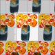 naranja Bella Artes acuarela palomitas en un jarrón. Flores abstractas coloridas florales sueltas. Hermoso arte floral.