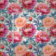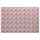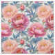 Esta tela tiene flores de color agua rosado y melocotón y hojas verdes.