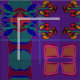 Tela Flores púrpura/ verde /naranja /amarillo>Tejido