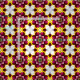 Patrón floral intrincado y vibrante con flores magenta y blancas, creando un diseño perfecto y llamativo sobre un fondo amarillo contrastante. Ideal para fondos de pantalla, proyectos decorativos y diseño textil.
