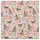 Tela Flores viejas Airedale Terrier rosas