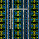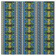 Canal boat and narrowboat fabric patterned with a traditional folk art style 'roses and castles' pattern of roses, daisies and stripes, in bright yellow, white and blue on black