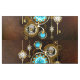 Lentes turquesa con un reloj de antigüedades con engranajes de latón y llaves doradas sobre un fondo oxidado y marrón. Estilo Steampunk.